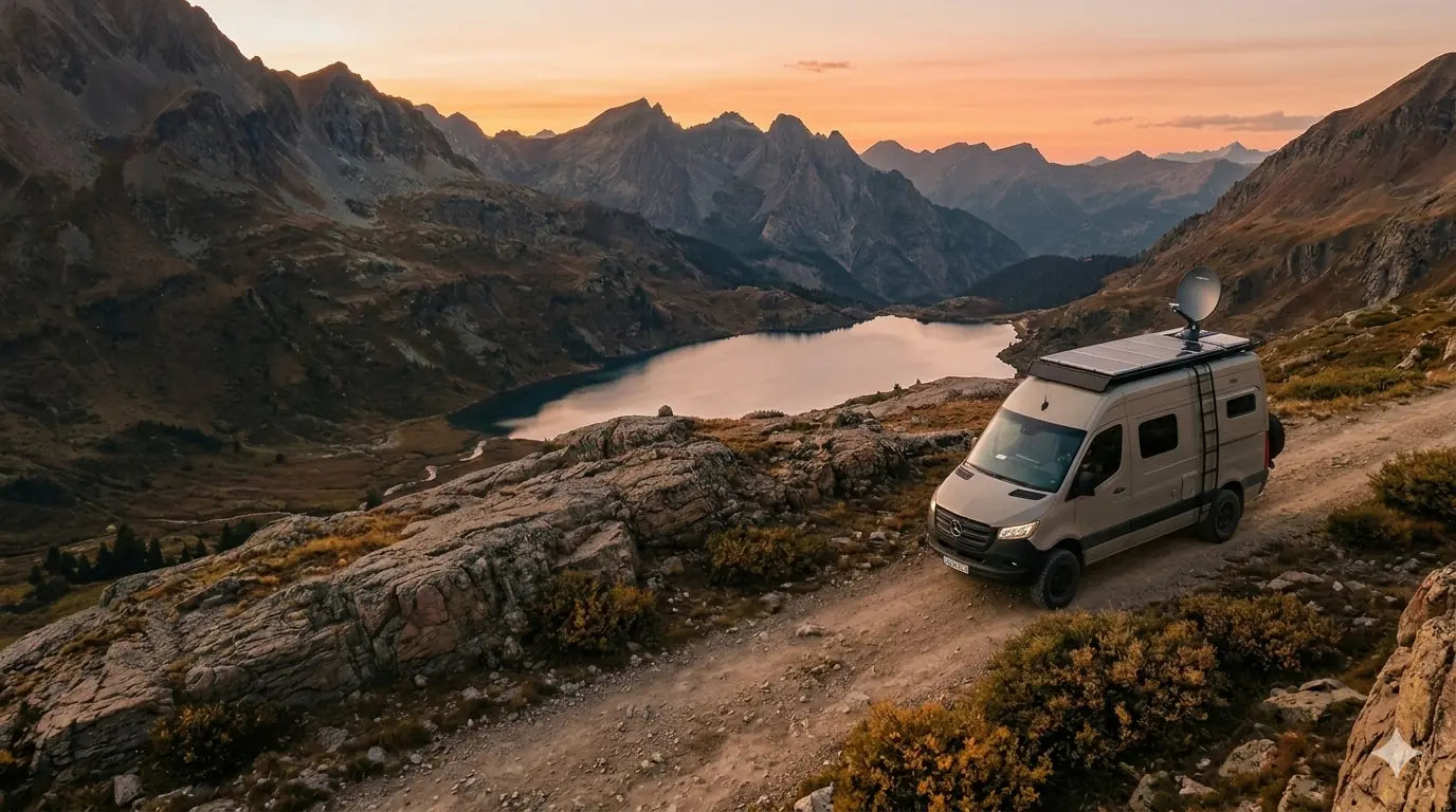 Complete zonnepaneelsets voor op het dak — van instap tot fulltime leven op de weg. Advies op maat van Vincent, snelle levering en installatie mogelijk.